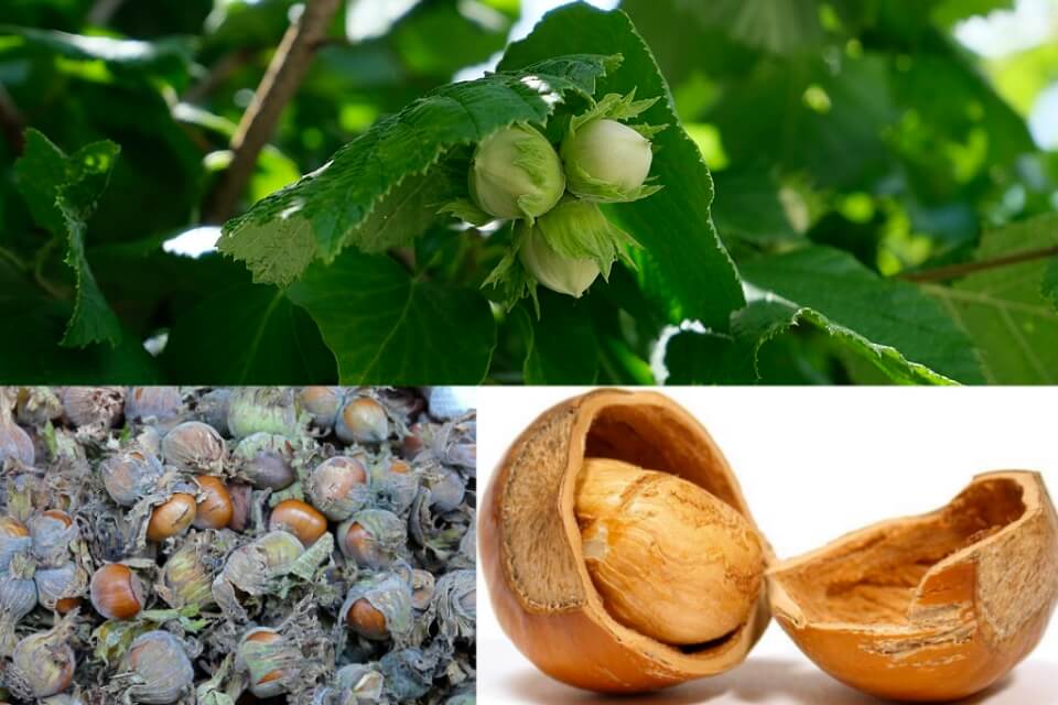 The hazel nut is the fruit of the hazel tree. A hazel nut cob is roughly spherical to oval, about 15–25 millimetres (5⁄8–1 inch) long and 10–15 mm (3⁄8–5⁄8 in) in diameter, with an outer fibrous husk surrounding a smooth shell. The nut falls out of the husk when ripe, about seven to eight months after pollination.
